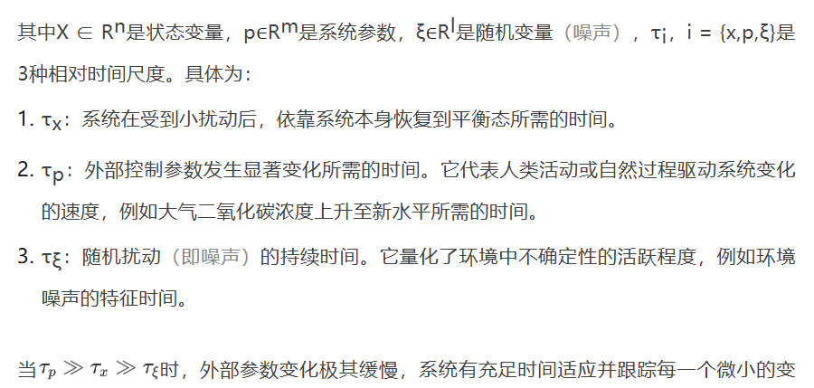 注1:临界在不同语境下,具有不同的含义。在热力学和统计物理的语境下,Critical transition,翻译为临界相变。在一般的复杂系统中,Tipping point,翻译为临界点,它的含义更广,可以考察非平衡系统的结构稳定性问题。