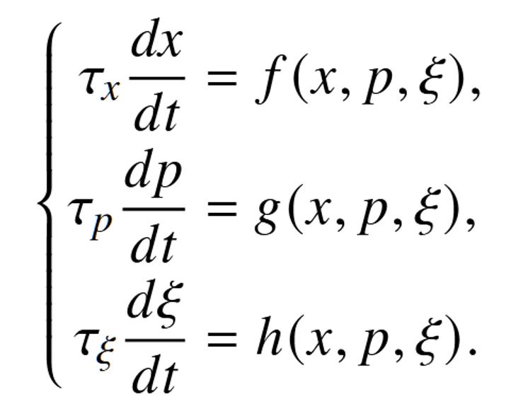 近年来,科学家们正努力建立一个更普适的理论框架,将Bifurcation-induced-tipping(分岔诱导突变)、Noise-induced-tipping(噪声诱导突变)和Rate-induced-tipping(速率诱导突变)等不同类型的突变统一在同一个语言体系下。这个框架的核心思想,是关注系统内部存在的多个参数的对应时间尺度的相对性,这也是托姆的突变论的自然推广。我们考虑这样的一个随机动力系统,如图6所示: