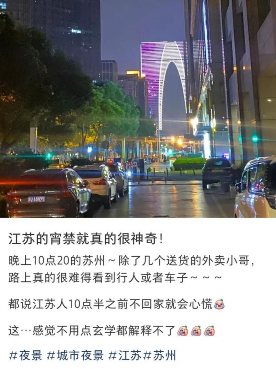 但不管外地人信不信,这就是江浙沪的客观现实,江苏当地的社会共识就是,过了晚上八点不回家还在街上晃悠的,基本只有两种人,一种是不务正业的街溜子,另一种就是不懂当地习惯的游客。