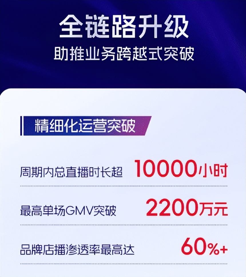 在核心增长指标方面,全域GMV实现了翻倍增长,GMV整体同比增长125%。其中,经销品牌整体GMV同比增长166%,自有品牌整体GMV同比增长135%。代运营业务表现突出,平均代运营客户GMV增幅达206%,代运营整体GMV同比增长142%。