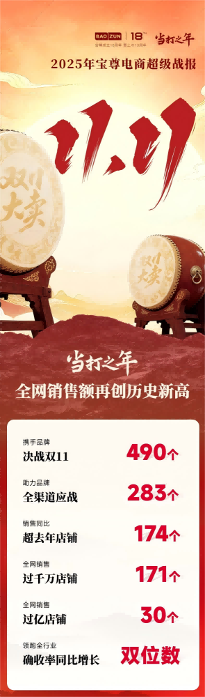 11月17日消息,宝尊集团近日发布2025年双11超级战报。宝尊集团在2025年双11大促期间交出了一份全面亮眼的成绩单,展现了其作为电商服务商在多维度的强劲实力。战报显示,集团携手490个品牌共创佳绩,全网销售额再创新高,其中30个品牌销售额破亿,171个店铺销售额超千万。