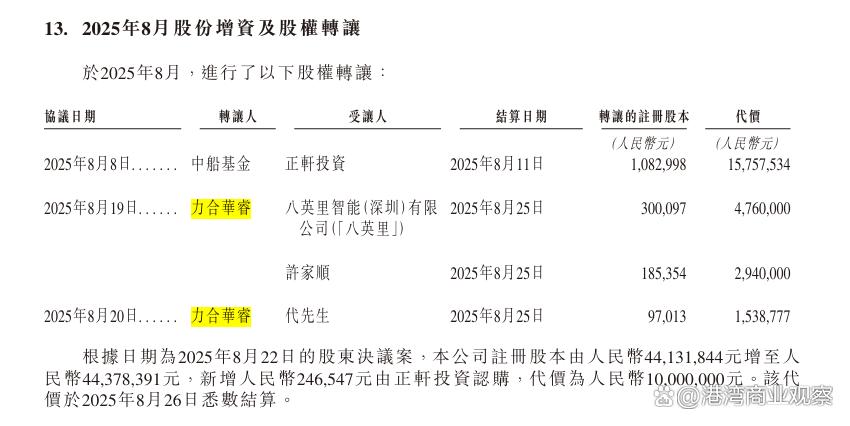 在博铭维递表前夕,2025年8月,原博铭维股东的力合华睿选择两次转让其所持有的股份,合计转让价格分别为923.88万元。而此举也被外界质疑存在为IPO突击套现的嫌疑。