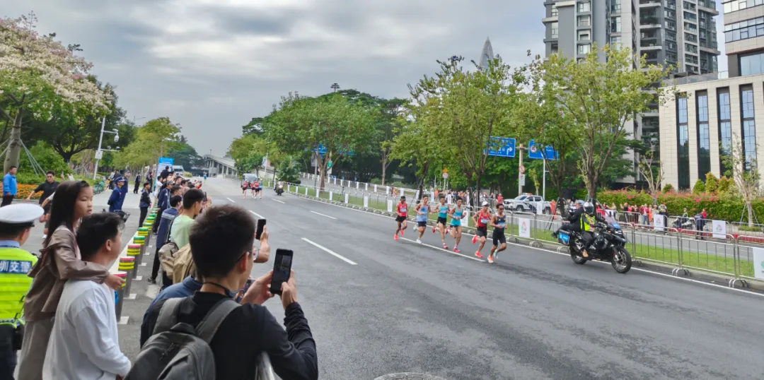 由于起点处和终点处均难以进入观赛,许多市民和跑友在深圳湾体育中心的步梯台阶上高高眺望选手们出发后,便匆匆转移到沙河西路两侧等候他们的到达。一位运动员从出现在视野到消失,时长大概不超过30秒,但这些观众有的已经守候两个多小时,只为看一眼国内现役顶尖跑者的优越跑姿。