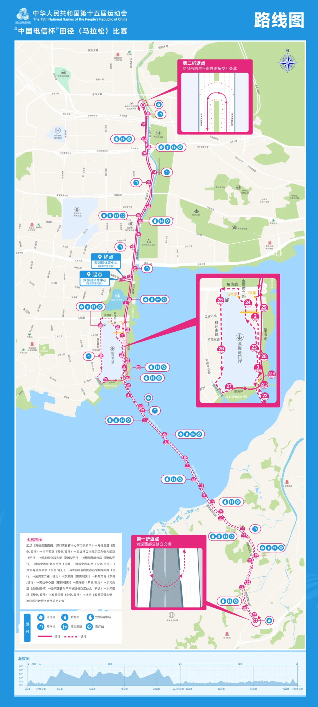 11月15日一大早,60多名运动员先后沿着深圳南山区的沙河西路冲上河西立交桥,这是深圳湾体育中心旁的一个上坡路段,也是第十五届全运会马拉松比赛的最后一公里。