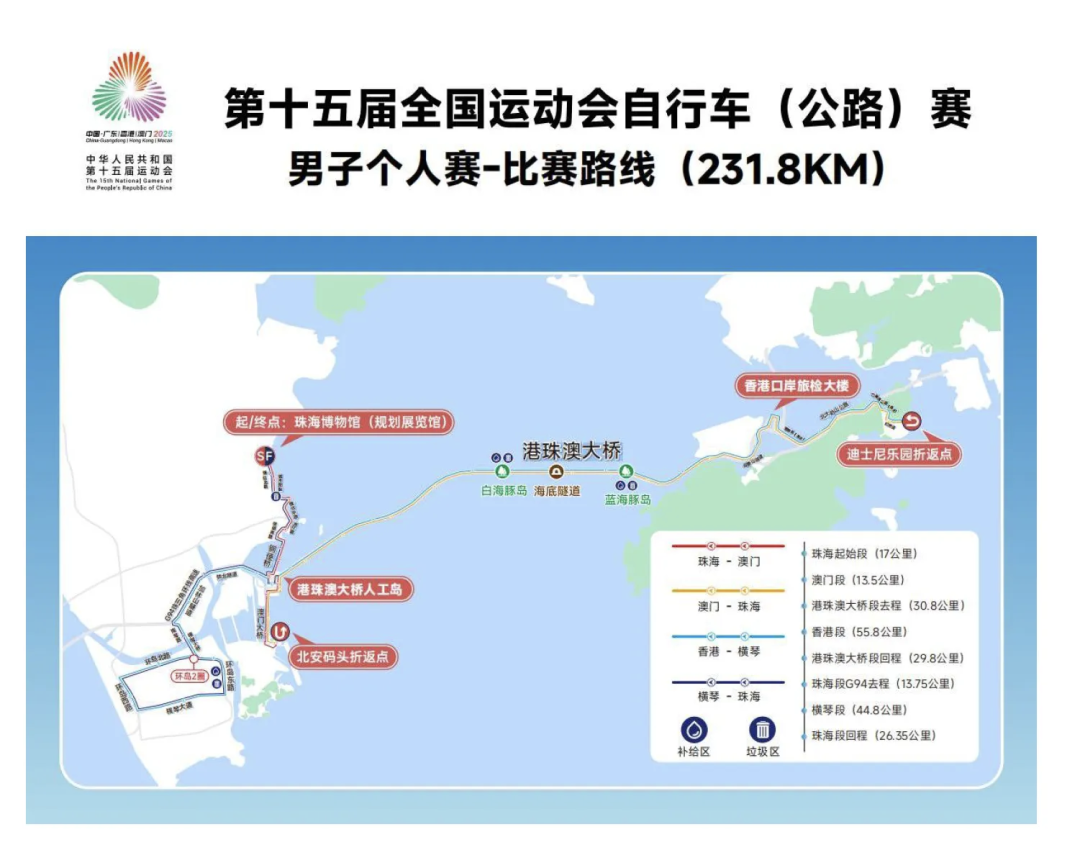 实际早在11月8日,作为全运会历史上首次跨境比赛,公路自行车男子个人赛就已经成功完赛。该场比赛全程231.8公里,选手们经过港珠澳大桥,跨越粤港澳三地,全程需要六次进出关。