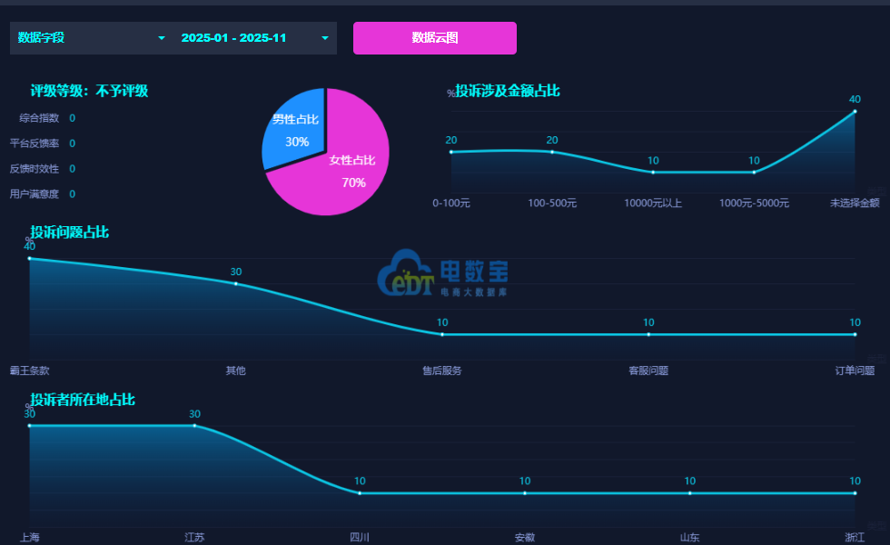 2025年至今,“电诉宝”受理投诉中涉及的生鲜电商领域用户有效投诉显示(依据投诉量排行),“盒马”排名第1位。最新评级为“不予评级”。除此之外,历年被投诉的类似平台还有:美团优选、花礼网、朴朴超市。