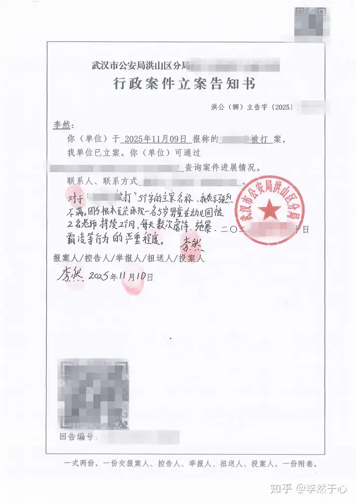只是,洪山区教育局的接访人员给我的反馈不尽人意:该工作人员称,“2名老师是自己离职还是被幼儿园开除,尚不明确”…我心想,校方发布的《关于辞退巫夏夏、高立的通知》,你是一个字都不看呀?该通报明确指出:经持续调查并有监控录像回溯,巫夏夏、高立于2025年10月9日-11月8日在大二班带班工作期间存在违背职业道德规范的行为,予以辞退…该工作人员称已经对此事进行了调查,我提问你们去幼儿园调查之后,园方辞退2名老师的原因是什么?你们调查的结果是什么呢?该工作人员沉默无语的一分钟,于我而言简直是震耳欲聋!