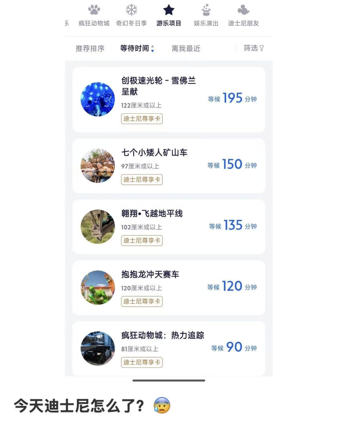 当前,上海迪士尼园内热门项目排队热度飙升,所有项目排队时长均突破1小时。午后时段,创极速光轮、疯狂动物城两大爆款项目的等候时间更是超过200分钟。有亲历游客表示,这一排队时长几乎刷新过去两年的新高。