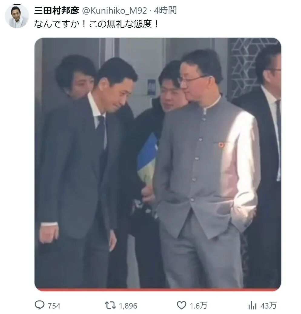 外交是在会议室里进行的,并非在走廊过道进行。在会谈内容上赢不了(日本),就利用离开的瞬间演戏。这是典型的中国式舆论宣传战。