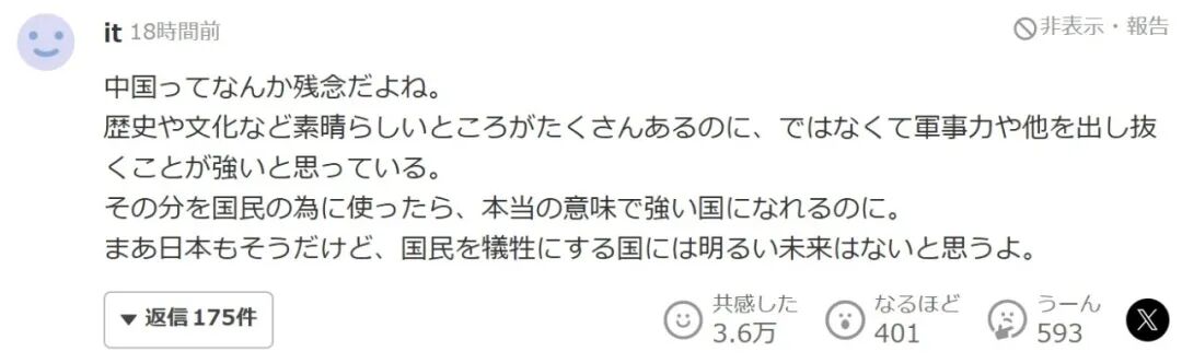 日本也是如此,我认为牺牲老百姓的国家没有光明未来。