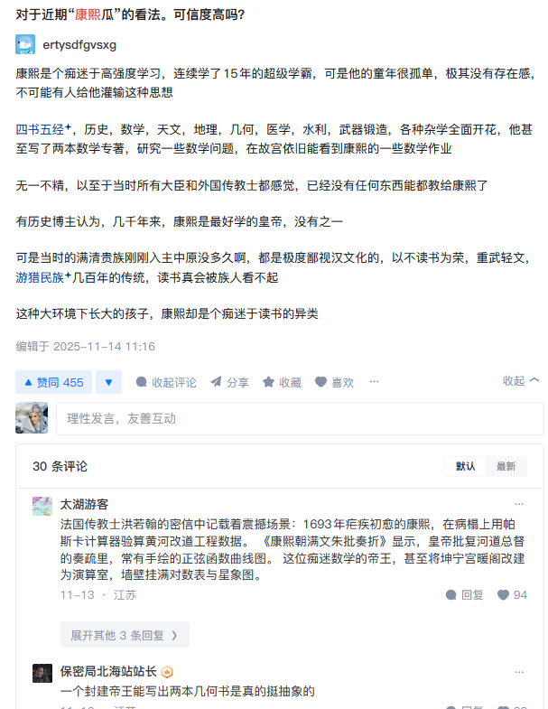 **实际上,洪承畴宇宙就在某种程度上就揭示了这个问题。**当时来华的外国传教士们都说康熙酷爱学习西方科学,精通各种学科且热爱大量做题。洪学宇宙就说了啊,你从关外野蛮民族的角度没法理解康熙极端热爱做题这事,但从洪学一下能就理解了。