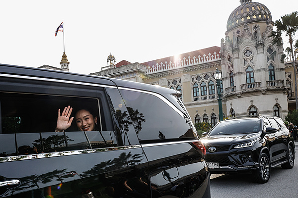 佩通坦在被泰国宪法法院解职后离开政府大楼时挥手致意。