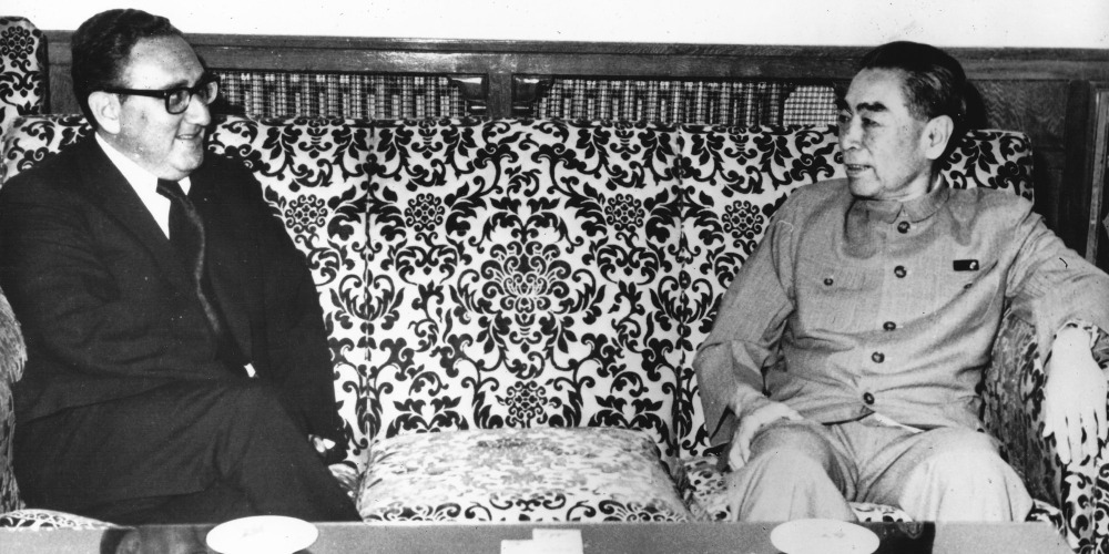 1971年基辛格秘密访华,和周恩来总理交谈。 资料图