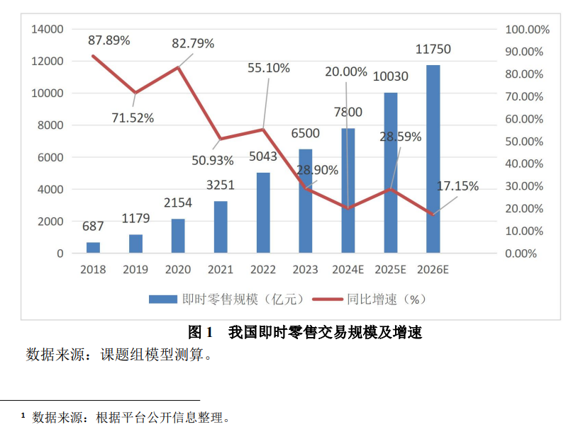 据商务部《即时零售行业发展报告(2024)》,我国即时零售处于快速发展期,规模持续增长。