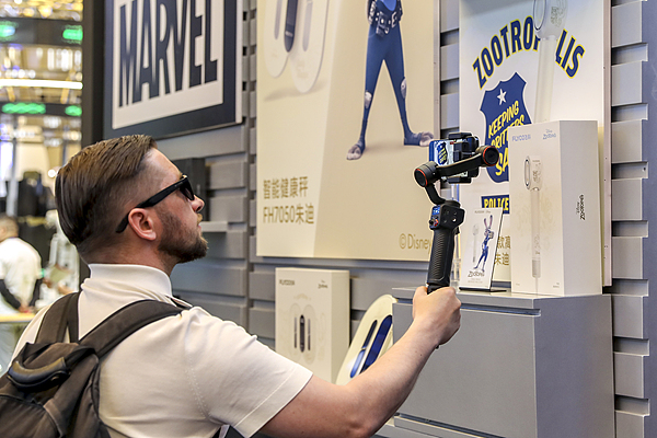 3月21日,上海,AWE中国家电及消费电子博览会。一名外国参观者在拍摄产品。 视觉中国