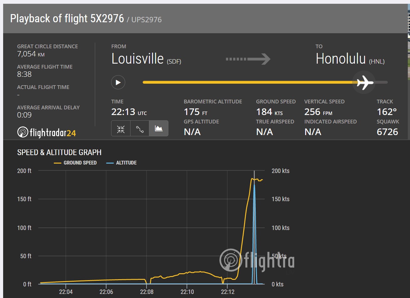 当地时间11月4日下午五点,UPS2976次航班货机准备从UPS的大本营路易斯维尔飞往夏威夷的火奴鲁鲁。执行这班货运航班的飞机是机龄高达34年的MD11货机,机号N296UP。