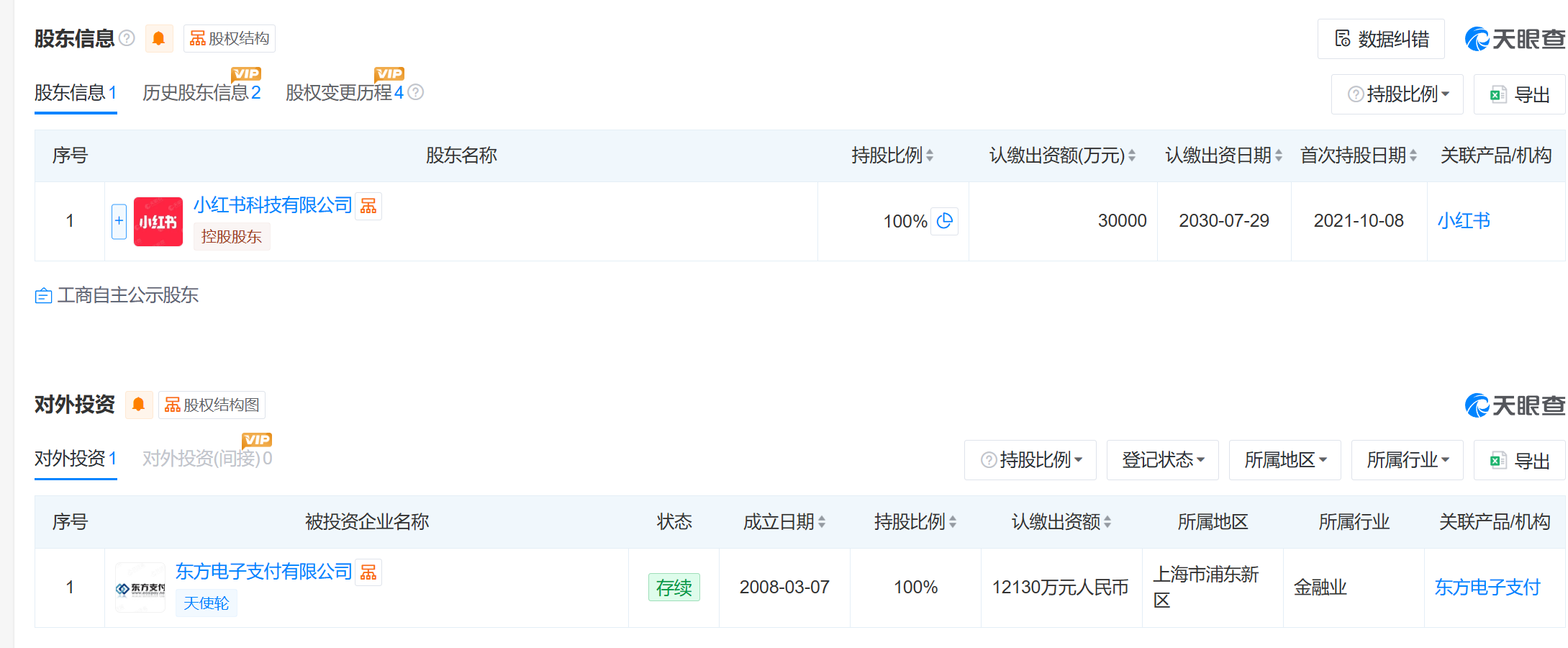 天眼查显示,支付机构东方电子支付有限公司近日完成股权变更,由小红书科技有限公司旗下子公司宁智信息科技实现全资控股。这意味着,小红书已获得支付牌照。