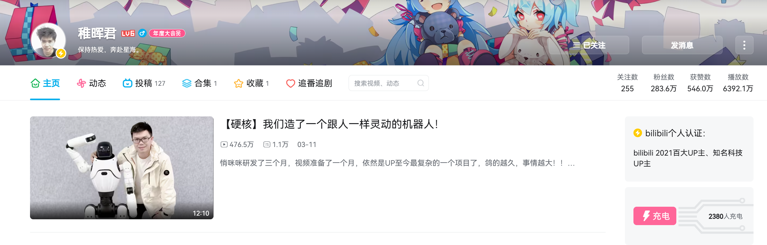 B站“稚晖君”个人主页