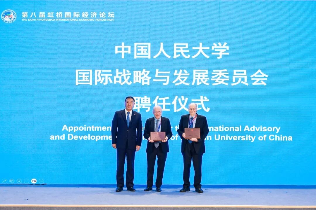 会上举行了中国人民大学国际战略与发展委员会委员聘任仪式。作为虹桥论坛四家智库合作伙伴之一,人大重阳在会上还发布了《面向2050:中国与世界贸易安全发展的共生路径》智库研究报告。
