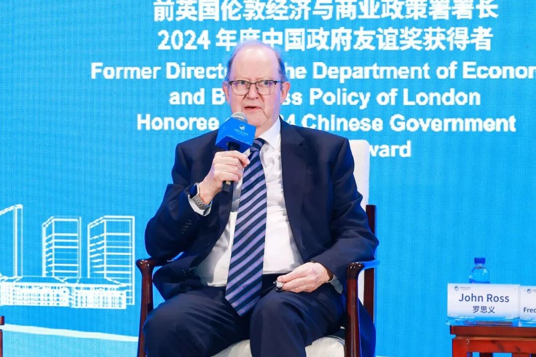 在圆桌讨论环节二,前英国伦敦经济与商业政策署署长、2024年度中国政府友谊奖获得者、中国人民大学重阳金融研究院高级研究员罗思义,香港贸易发展局主席马时亨,美国华盛顿州商务厅厅长阮卓,嘉吉农业与贸易亚太集团总裁柯沛瑜围绕“经济全球化逆流下的开放贸易”展开研讨。王文主持圆桌讨论环节二。