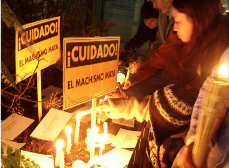 图片为阿根廷女性在“不再少一个”运动中纪念被性别暴力残杀的女性。标语为“小心!大男子主义会杀人!”图片来源:Wikimedia Commons