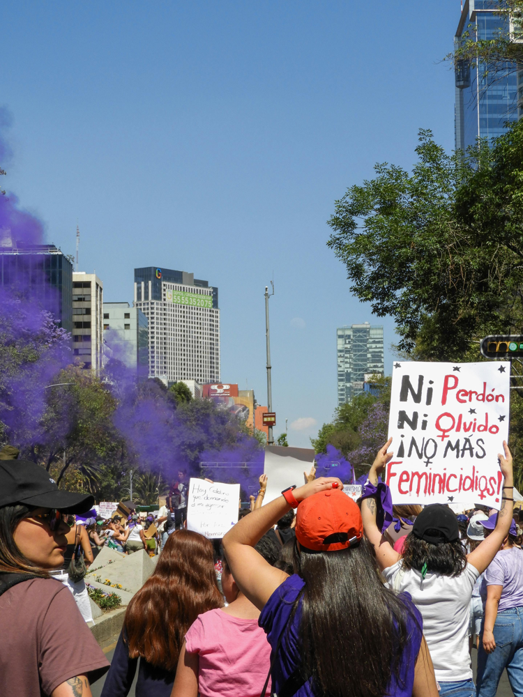 每年11月25日“消除对妇女暴力日”,哥伦比亚、墨西哥、阿根廷、巴西等国都会有大规模游行,女性举牌疾呼:“Vivas nos queremos”(我们想要活下去)、“Ni una menos”(不要再少一个)等口号响彻街头,要求政府落实法律保护、惩治施暴者。在墨西哥城、圣保罗、蒙得维的亚等城市的市中心,往往可见成百上千身穿紫色、手持标语的抗议者,呼吁“禁止性别暴力”与“尊重女性权利”。