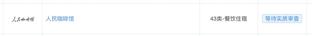 此前该公司申请的“人民咖啡馆”商标还在审查阶段