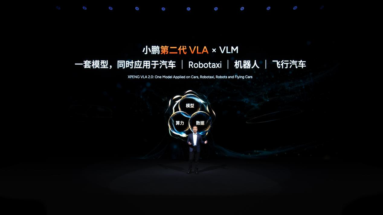 促成这一转变的底层逻辑,在于何小鹏提出的“物理AI”概念。当天,小鹏围绕这一理念展示了多项重要应用:第二代VLA模型、小鹏Robotaxi、全新一代IRON人形机器人,以及汇天的两套飞行体系。