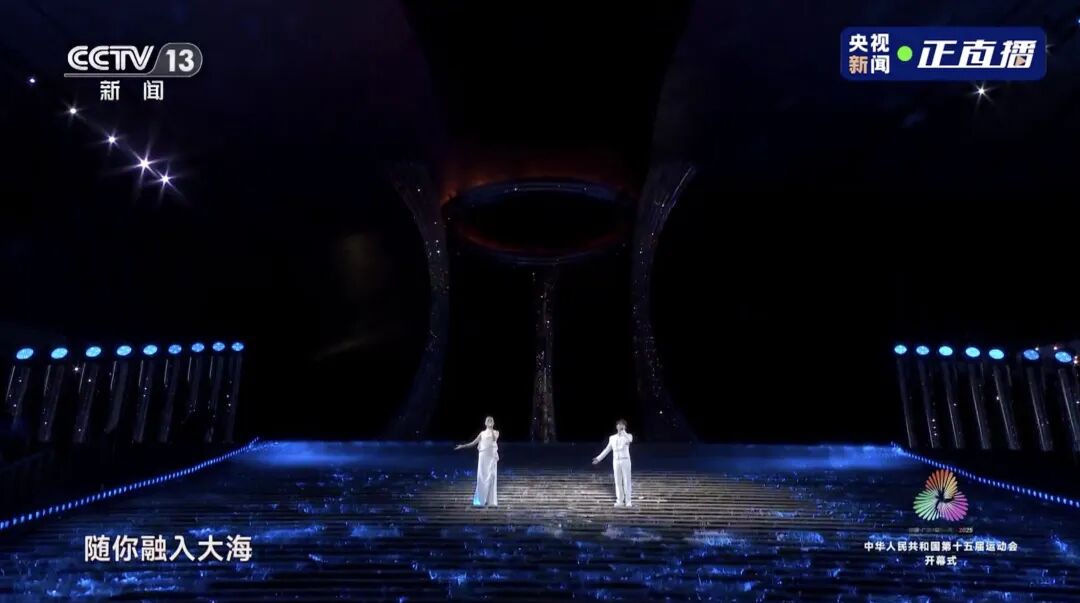 开幕式现场,周深、单依纯合唱主题歌《天海一心》,以歌声凝聚三地情谊。