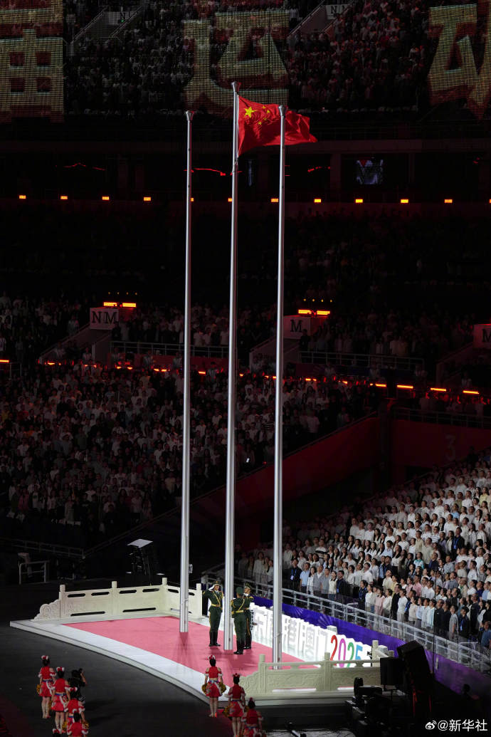 十五运会开幕式现场全体起立,升中华人民共和国国旗,奏唱中华人民共和国国歌。