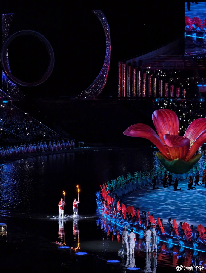 最后一棒点火火炬手来自粤港澳三地,他们是男子100米亚洲纪录保持者苏炳添,第32、33届奥运会男子花剑金牌得主、香港运动员张家朗,第19届亚运会武术长拳金牌获得者、澳门运动员李祎。