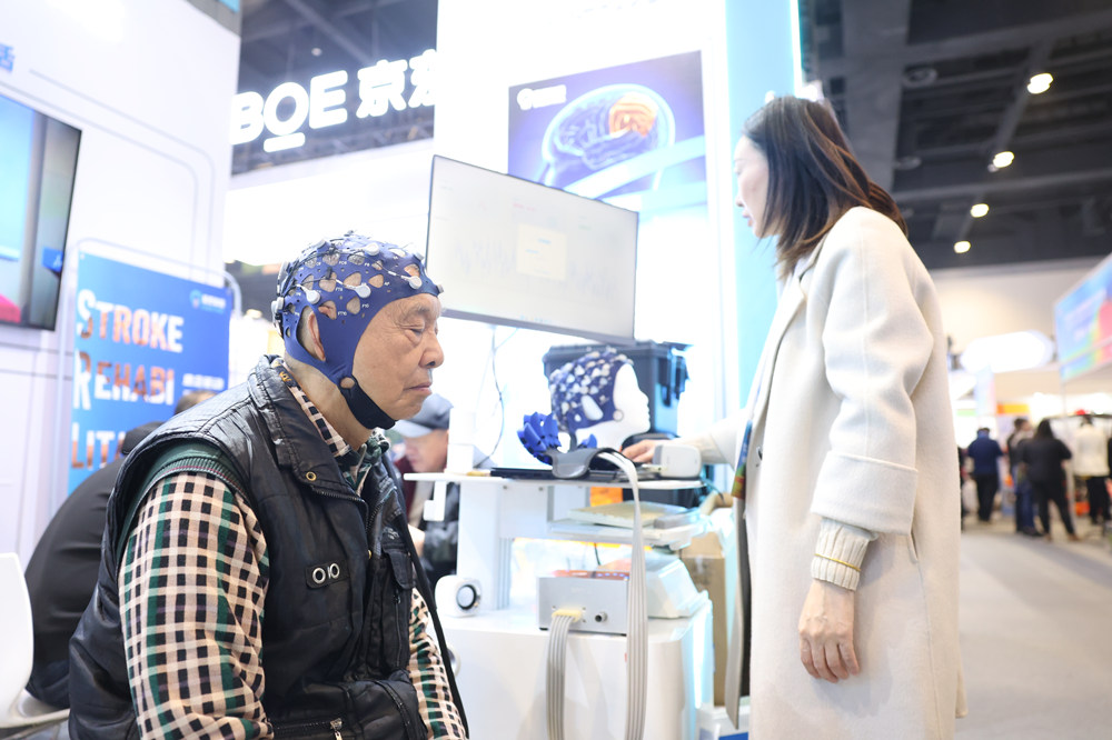 2025年10月,第十一届北京国际老龄产业博览会,老人体验认知障碍脑机接口进行检测。 东方IC