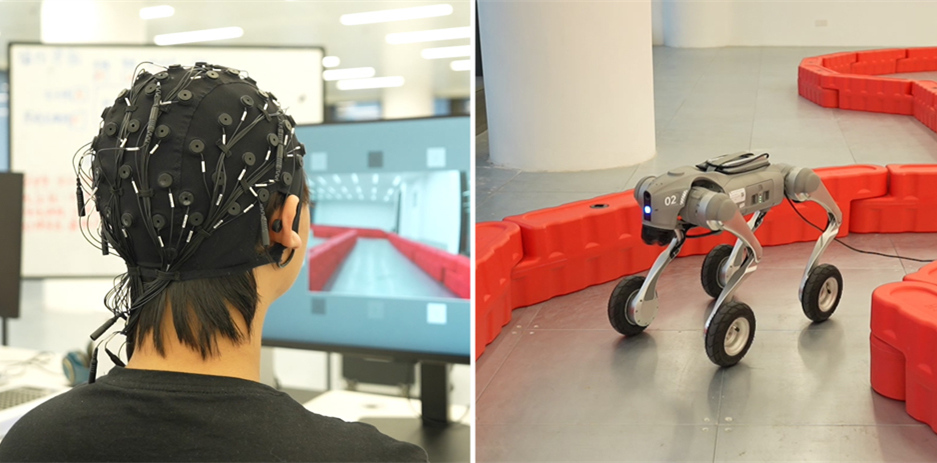 岩思类脑工作人员展示“脑控”机器狗 观察者网