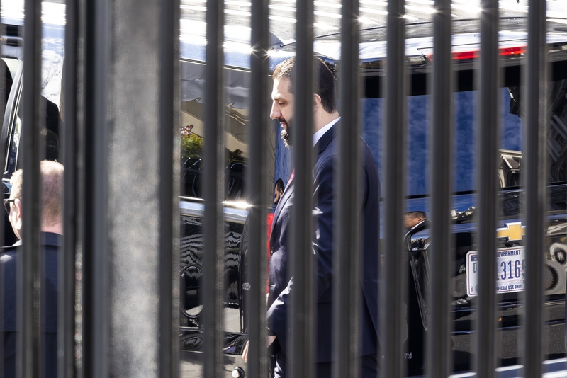 当地时间2025年11月10日,叙利亚政权领导人艾哈迈德·沙拉被拍到从侧面进入白宫。 IC Photo