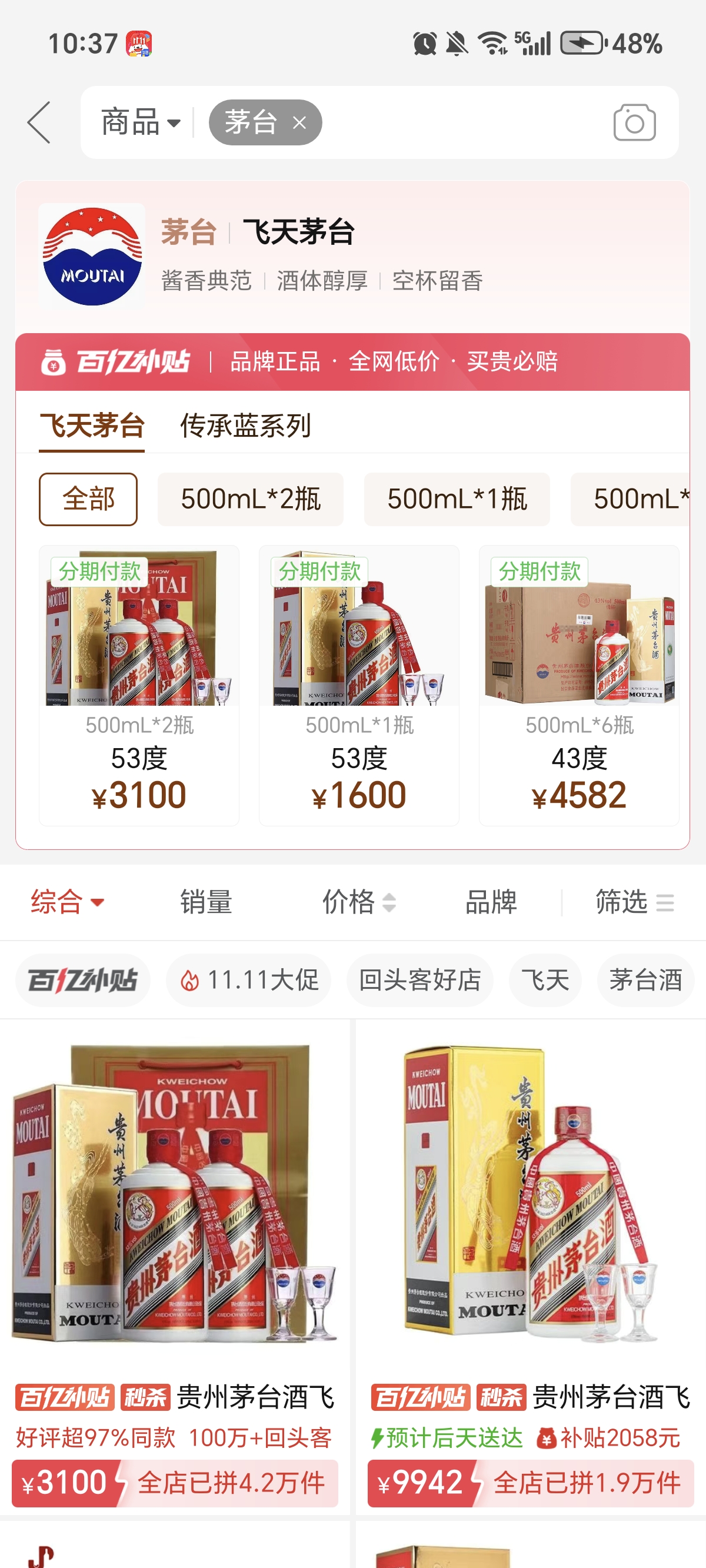 时间回溯到2024年“双11”大促期间,一则“飞天茅台价格跌近2000元”的话题迅速登上热搜,瞬间吸引了无数消费者的目光。彼时,电商平台纷纷使出“百亿补贴”这一杀手锏,众多白酒价格被拉至新低,飞天茅台自然也未能幸免。