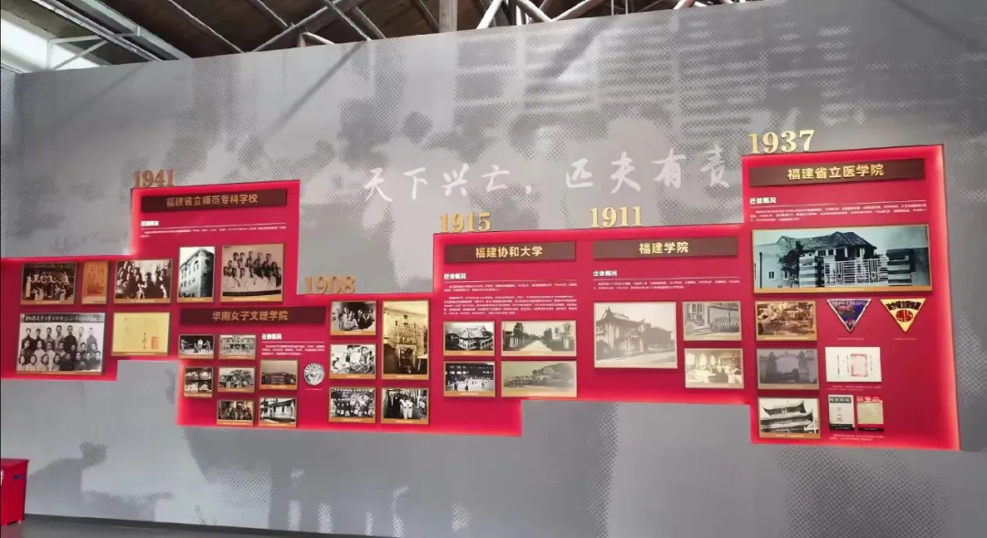 展览以“救亡兴起·教育救国”“烽火连天·弦歌不辍”“马背学堂 红色血脉”“百端待举·战后新生”四大篇章为主线,通过数百幅历史图片、文献档案与多媒体场景,生动再现高校师生在战火中向西南、西北、中南及华东山区转移的壮阔历程。馆内特别设置“马背学堂 红色血脉”展区,集中展示抗日军政大学、华北联合大学等红色学府在极端艰苦条件下坚持办学、在斗争中培养骨干的感人事迹;“烽火弦歌映山海”展区则聚焦福建与台湾地区高校的迁徙与战后发展,凸显东南文脉在抗战中的特殊贡献,展现两岸教育同根同源的历史渊源。
