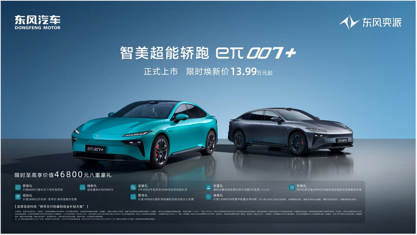 超感速7,奕触即发!11月10日,在东风奕派品牌发布两周年之际,全新“智美超能轿跑”eπ007+在大湾区创新之城深圳正式上市,限时焕新价13.99万元起。11月30日前下定更可享超级置换补贴5000元、整车及三电终身质保、新车色限时免费等至高价值46800元的八重豪礼。