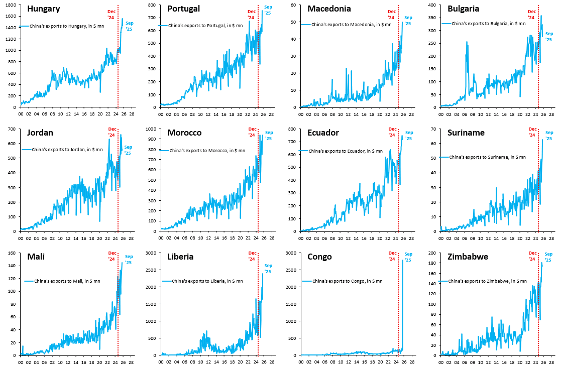 中国有全球市场可以开拓,对除美国外出口高速增长的国家随便一找就是一堆,而且不是作为中转站发往美国的。美国没有中国的开拓能力,去帮助伙伴国克服生意困难、出口信贷、基建合作,以前胡吹的BBB之类的全球基建计划早黄了。在多种资源商品上,中国的量都是第二名十倍以上的最大买家,大豆不卖给中国就没有别的买家能承接。