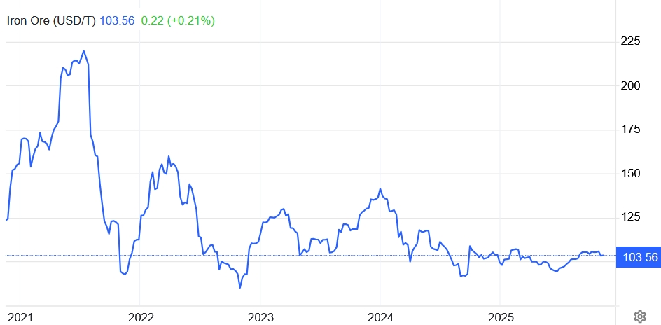 晨星公司股票分析师乔恩·米尔斯分析称,钢铁厂利润越高,越愿意为含铁量较高铁矿支付高价,“西芒杜铁矿石能获得的溢价取决于钢铁厂利润,可能约每吨14美元。”截至11月11日,铁矿石价格为每吨103.56美元左右,约为2021年高点的一半。