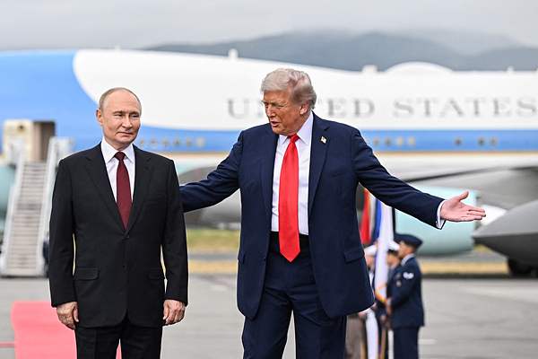当地时间8月15日,特朗普在美国阿拉斯加州迎接俄罗斯总统普京 视觉中国