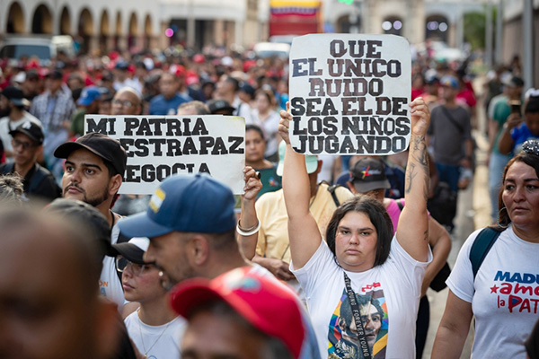 当地时间10月30日,委内瑞拉民众举行示威游行,抗议美国在加勒比海的军事部署。 IC Photo