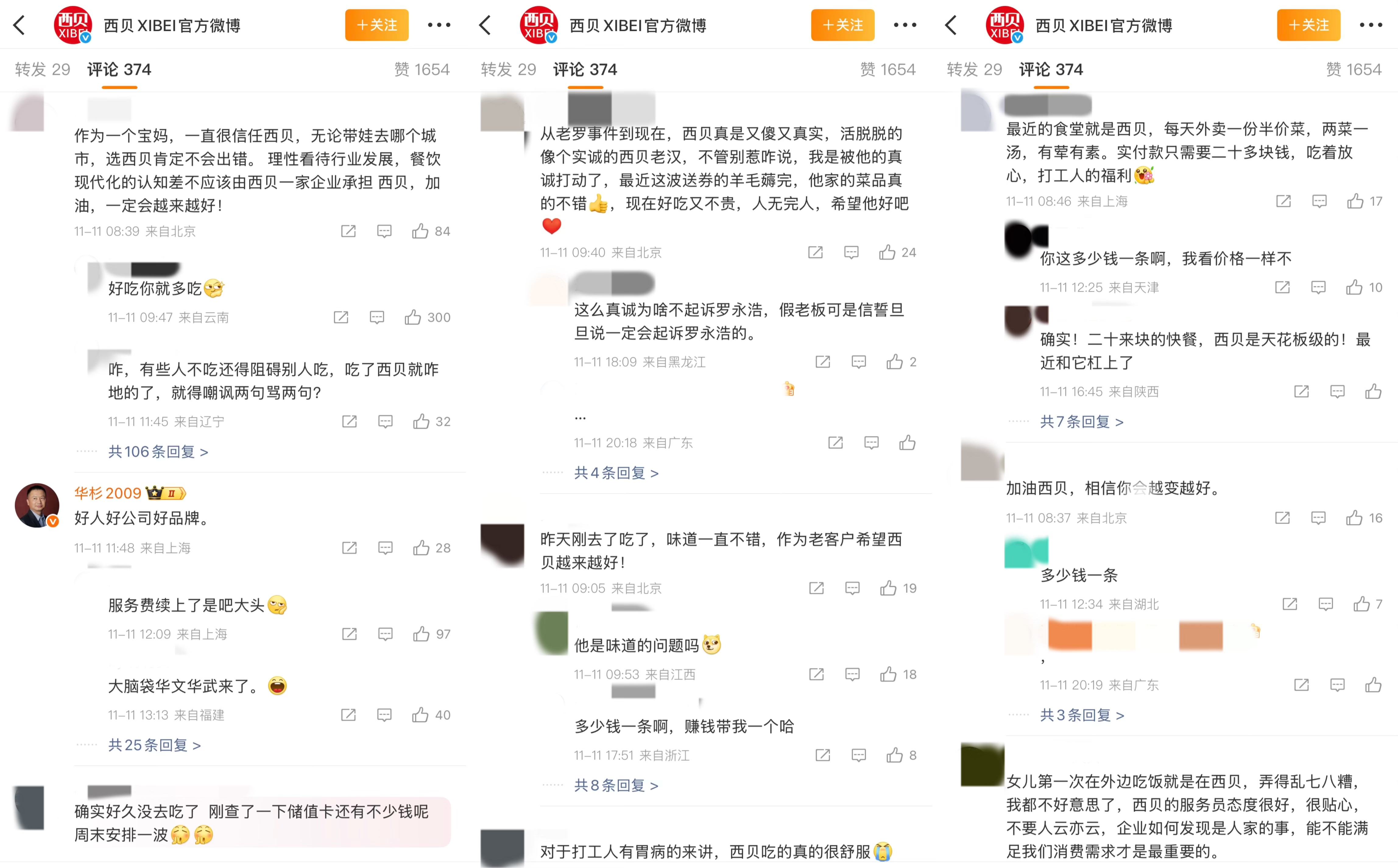 另有网友称:“从老罗事件到现在,西贝真是又傻又真实。不管别人怎么说,我是被他的真诚打动了,最近这波送券的羊毛薅完,菜品真的不错,好吃又不贵。人无完人,希望他好吧。”