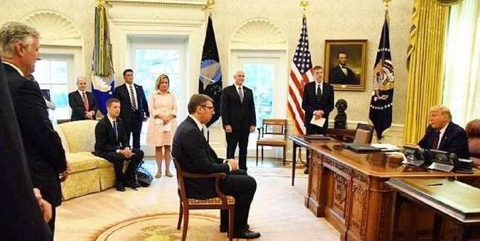 2020年,武契奇赴美与特朗普会面,被安排坐在“小板凳”上的画面在国内引发巨大争议。而同一时期,特朗普的巴尔干事务特使理查德·格雷内尔开始扮演“说客”和中间人角色,在塞尔维亚、特朗普家族与库什纳之间穿梭。