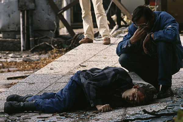 在萨拉热窝围城战期间,一名男子在一名平民受害者遗体旁哀悼 视觉中国