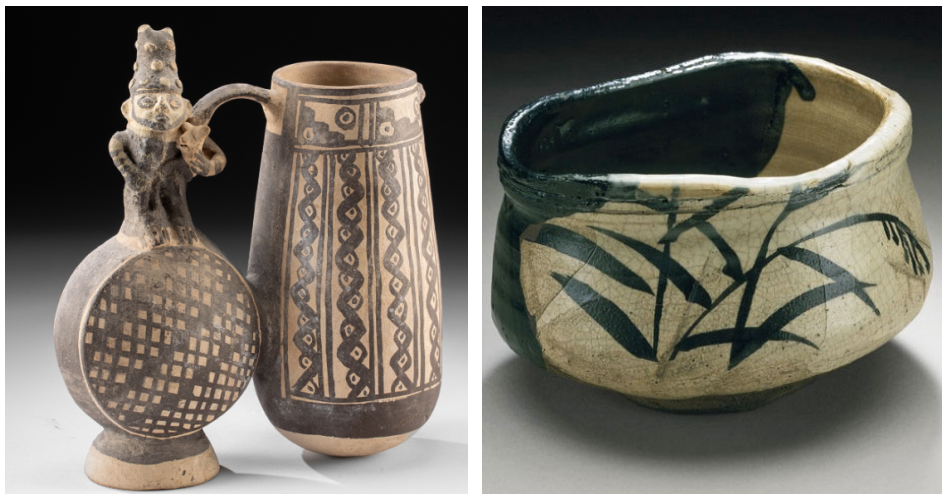 经典钱凯陶器(左)和天野认为与之相似的日本织布烧(右)