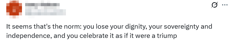 对于瑞士政府“喜大普奔”官宣与美国达成协议,也有网民难掩失望,“你失去了尊严、主权和独立,却还把它当作一场胜利来庆祝。这似乎成了常态。”