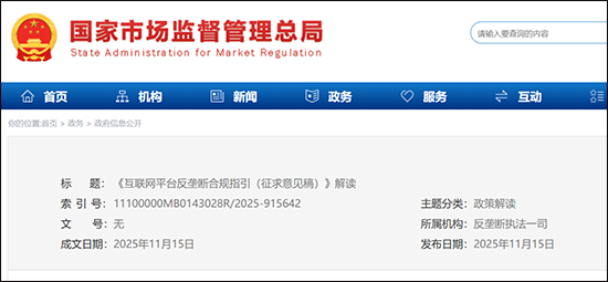 国家市场监督管理总局网站11月15日消息,市场监管总局发布《互联网平台反垄断合规指引(征求意见稿)》,并对相关内容进行了权威解读。