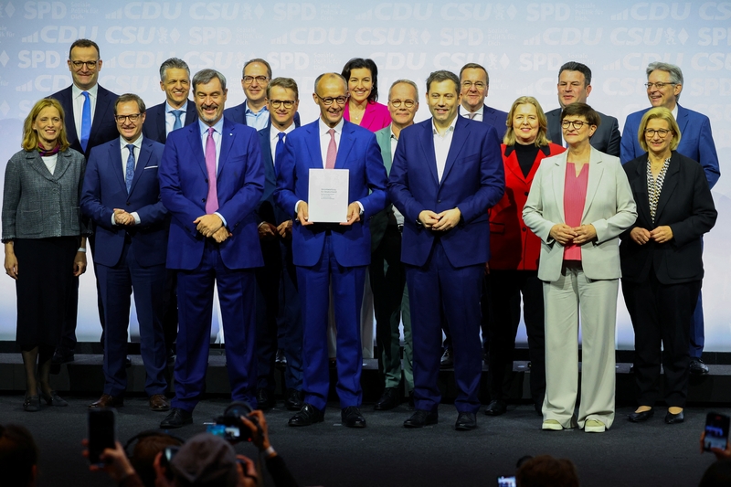 当地时间2025年5月5日,德国柏林,由基督教民主联盟(基民盟)和基督教社会联盟(基社盟)组成的德国联盟党和社会民主党(社民党)签署联合执政协议。 IC Photo