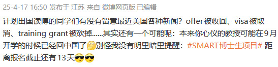 在演讲中,颜宁也鼓励学生报考深圳医学科学院等国内院校。她不无幽默地提到今年4月发布的一条微博,说可能等到你拿了offer,发现心仪的老师已经回国了。