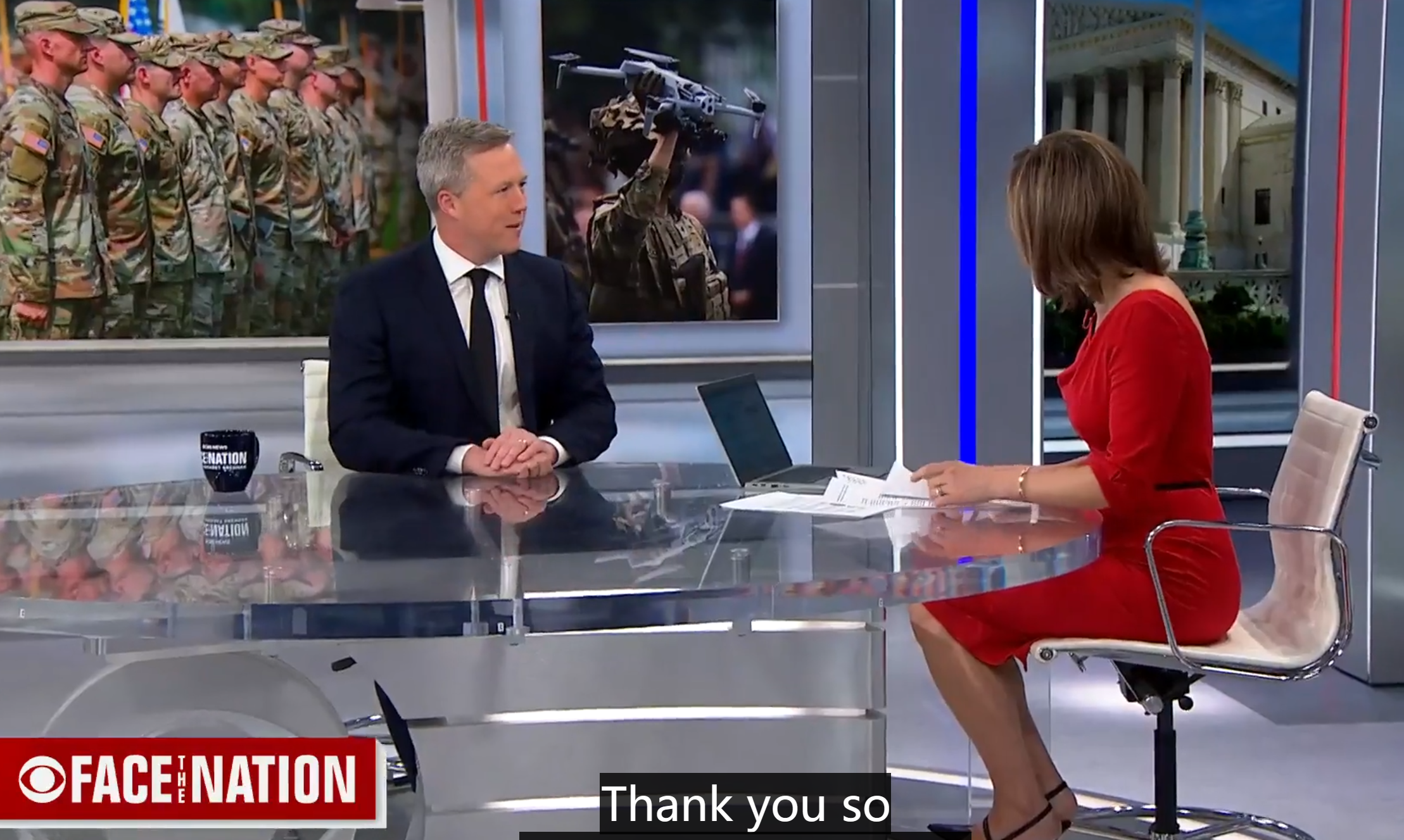 接受采访的美国陆军部长CBS电视台截图